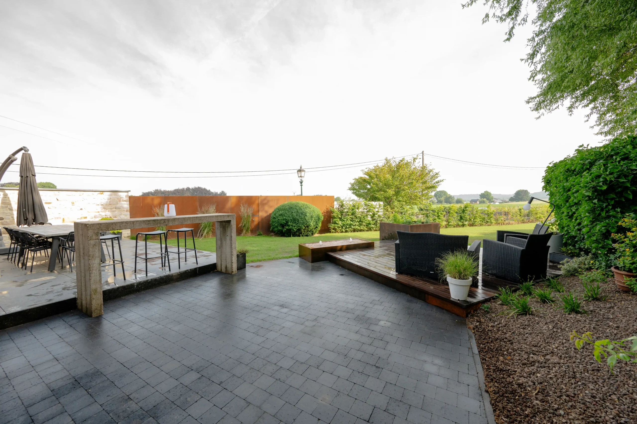 Nous pouvons aménager votre extérieur avec soin et y effectuer différents types de travaux : revêtements, aménagements, réfections de murs, création d’allées, …
